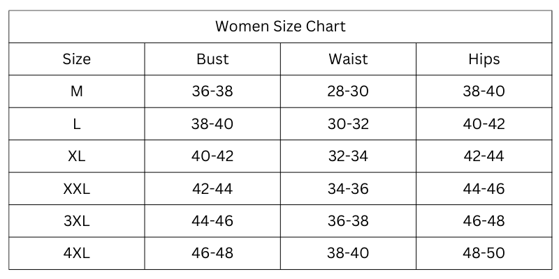 Size Chart (Inches):