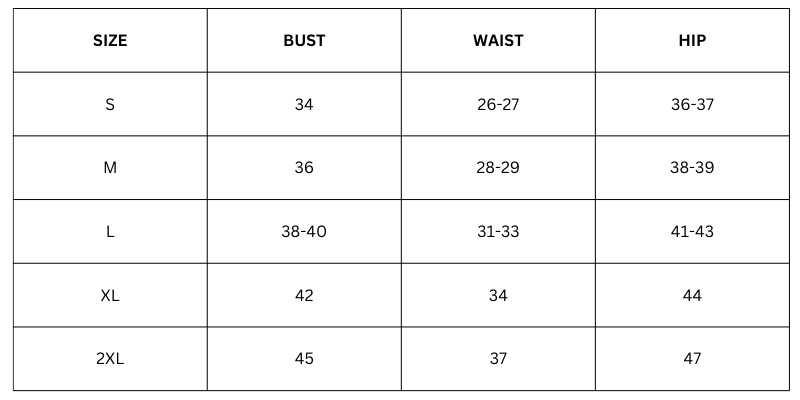 Size Chart(inches):