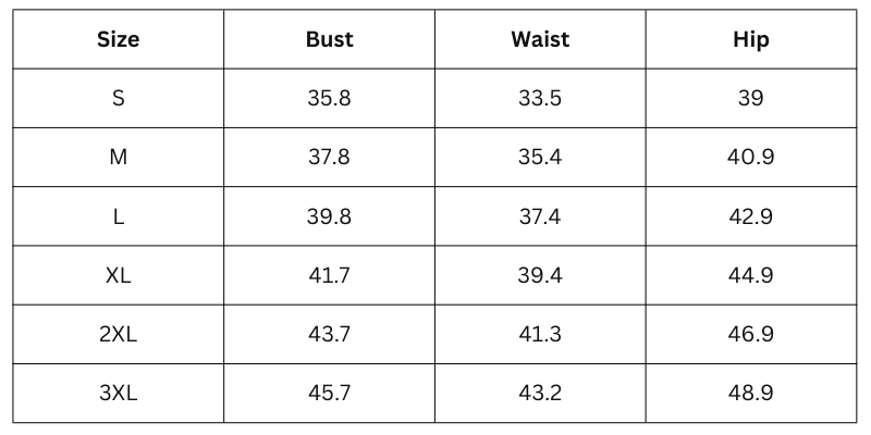 Size Chart (inches):