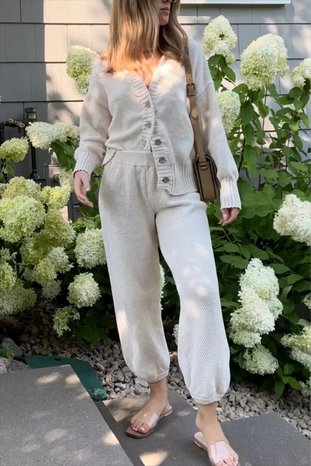 Pants: This cardi set features a high-rise pull-on design, a jogger-style fit, hemlines with ribbed bands, and a relaxed, balloon-style silhouette.