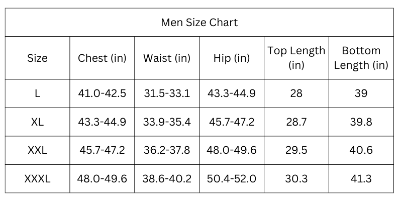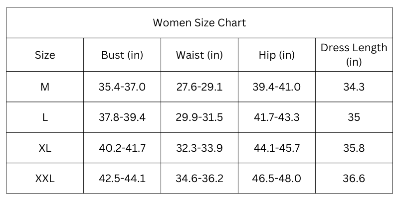 Size Chart (Inches):